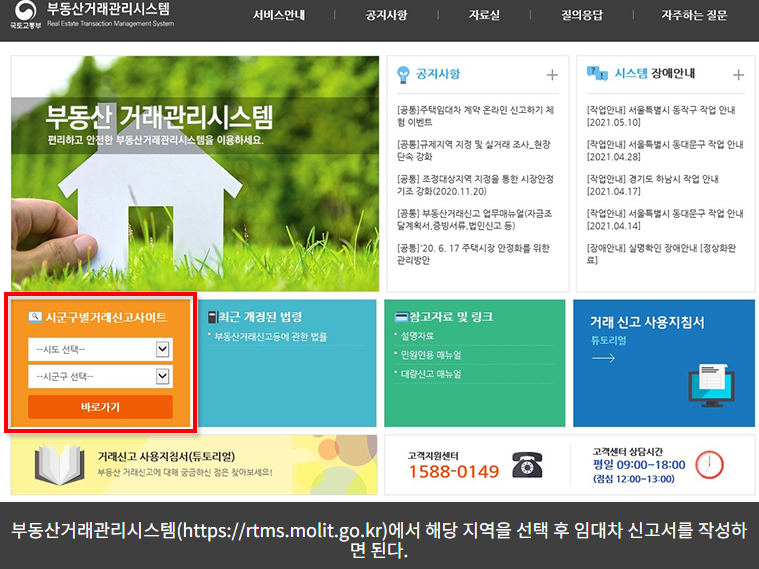 부동산거래신고 : 1588-0149 주택임대차신고 : 1533-2949